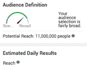 Thanks to Facebook’s comprehensive interface, you’re also provided with an audience definition tracker along with an estimated daily reach tool. Through manual targeting, you’ll see how large and how broad your audience is. In most cases, the broader the audience, the larger the reach, and the better optimised your ad can get. Be mindful that this figure is only an estimate.