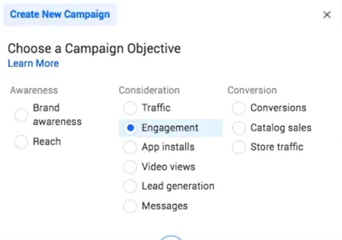 Some of the most commonly chosen objectives include Brand Awareness, Traffic, Engagement, and Conversions. The list of all 11 will appear once you opt to create a new campaign. You can hover over each objective to understand more about what they are, but generally:
